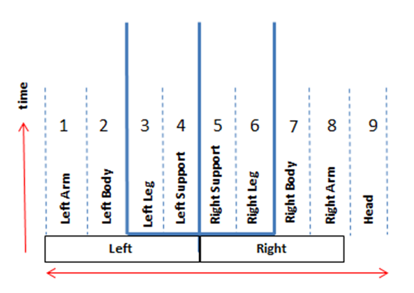Figure 1 Basic structure of the Labanotation staff with nine columns representing body parts.