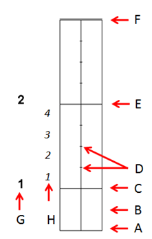 Figure 2 Notational elements in the Labanotation staff, including start lines, beats, and timing.