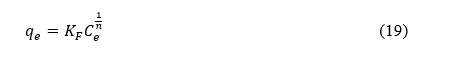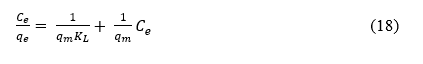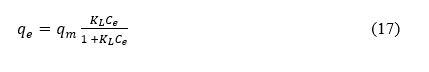 where C o (mg/L) represents the initial concentration of the MV solution, C e (mg/L) is the MV concentration in the liquid phase at equilibrium, m (g) denotes the adsorbent dose, V (L) is the volume of MV solution, and C t (mg/L) is the concentration of MV in the liquid phase at a given time, t (min).