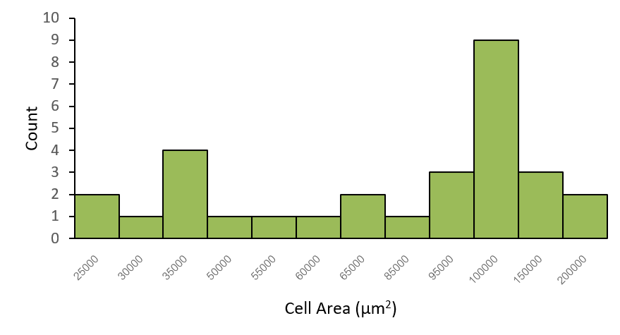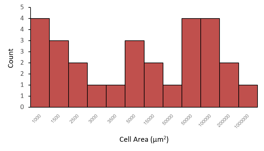 Figure 14 Cell distribution of the SEM images polyurethane industry (PI).
