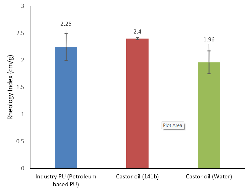 Table 2 Ratio of the polyol to isocyanate polyurethane from Industry based Polyol and polyol to isocyanate to blowing agent for castor oil polyol with HCFC 141b and water.