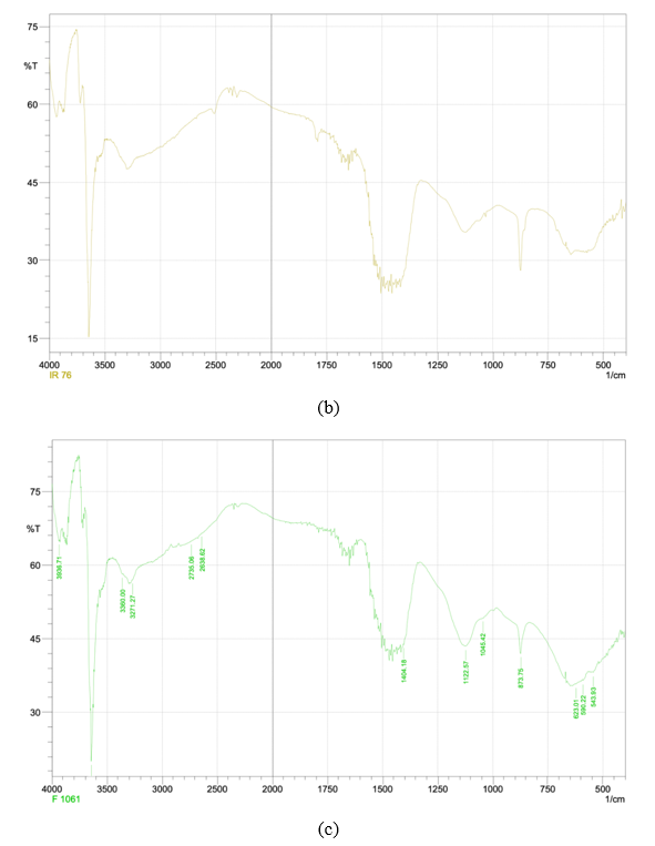 Procedures of FTIR analyzed was measured using the Fourier infrared spectrophotometer over the range of 4000 to 400 cm −1 at a 2 cm −1 resolution and averaging 64 scans [38]. This analyzed was used to identify functional groups in the resulting CaO compound using FT-IR spectroscopy (IRPrestige 21, Shimadzu Corp., Kyoto, Japan). This analysis helps to confirm the presence of specific chemical bonds and changes in chemical structure due to calcination at various temperatures.