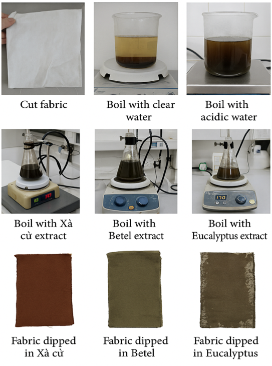 Treatment was conducted via a boiling adsorption method, where the fabric was immersed in extract solution and boiled on a magnetic hotplate stirrer to ensure uniform impregnation. After treatment, samples were rinsed in deionized water and dried using a laboratory oven.