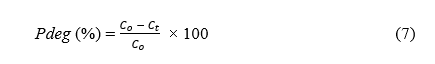 X-ray diffraction (XRD, Rigaku Smart Lab) analysis was performed on powder samples scanned from 10o to 80° (2θ) at a rate of 2° per minute with a step size of 0.02° to determine phase purity and crystallite size. Fourier transform infrared (FTIR, Shimadzu IRPrestige-21) spectroscopy was conducted using KBr pellets (1:100 sample:KBr ratio) across 400 to 4,000 cm−1 at a resolution of 4 cm−1 resolution. Field Emission Scanning Electron Microscopy (FESEM, JSM-IT 700HR) was operated at 5 to 15 kV with a resolution of 1.0 nm to examine surface morphology. Optical properties and photocatalytic performance were analyzed using a UV-Vis spectrophotometer (Genesis 150) in diffuse reflectance mode (200 to 800 nm).