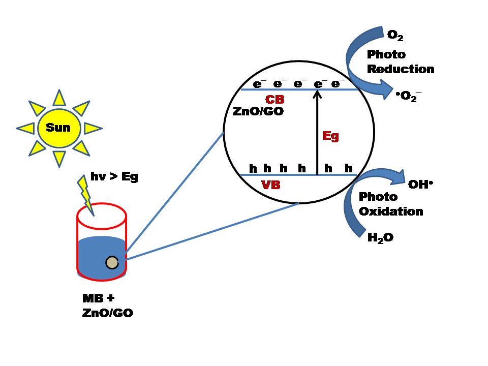 Keywords: Methylene blue, Degradation, Photocatalyst, Zinc oxide, Graphene oxide, Microwave, Visible light