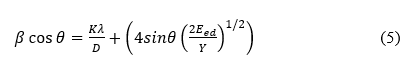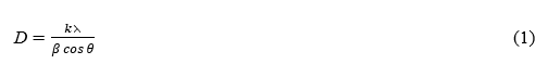where D, k, λ, β, and θ are the average particle size, coupling constant (k = 0.9), the wavelength of the X-ray