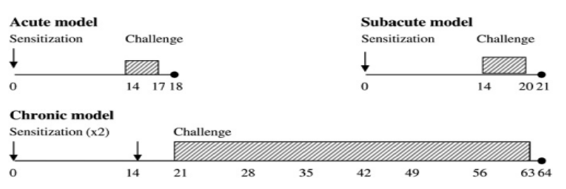 Figure 1 Modeling of acute, subacute and chronic asthma animal models.