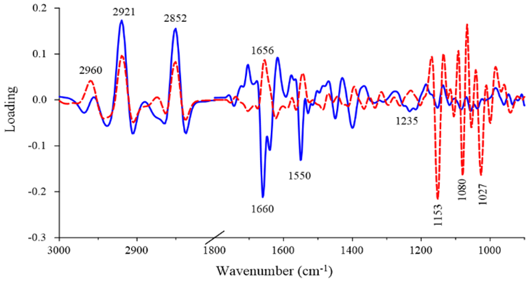 C O C, C O from polysaccharide (1,200-900 cm-1) |