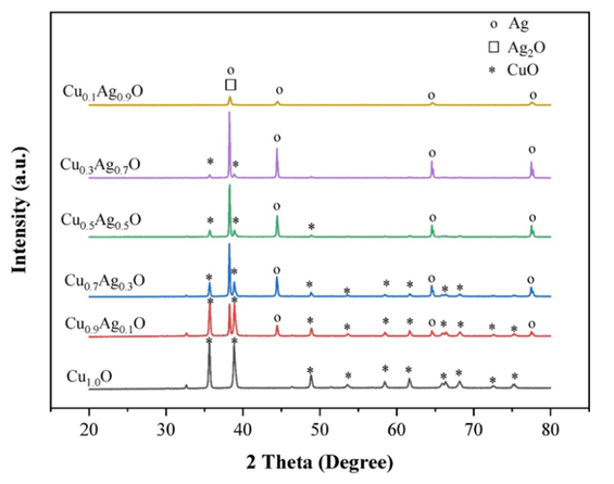 (x = 0.1 – 0.7) samples formed composites containing CuO, Ag, and
