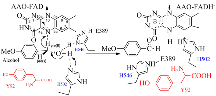 A Hernández‐Ortega, P Ferreira, P Merino, M Medina, VGuallar and AT Martínez.Stereoselective hydride transfer by aryl‐alcohol oxidase, a member of the GMCsuperfamily. ChemBioChem 2012; 13(3), 427-435.