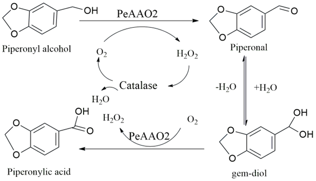 N Jankowski, K Koschorreck and VB Urlacher. Aryl‐alcohol‐oxidase‐mediated synthesis of piperonal and other valuable aldehydes. Advanced Synthesis and Catalysis 2022; 364(14), 2364-2372.