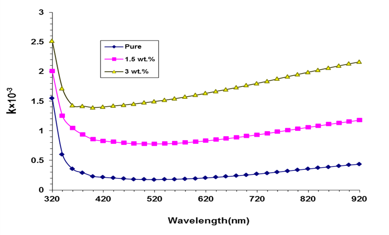 Figure 9 Extinction coefficient behavior for Chitosan-SnO2/ZnO films.
