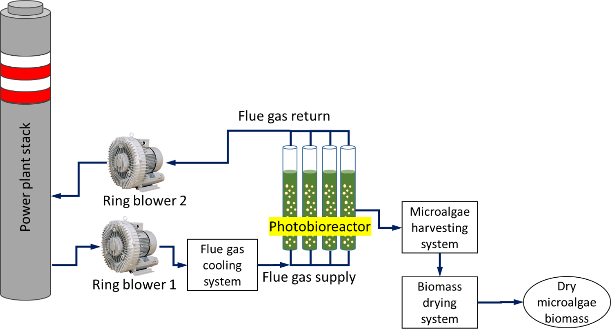 Figure 3 The schematic of the CO2-based microalgae cultivation system in carbon capture technology [35].