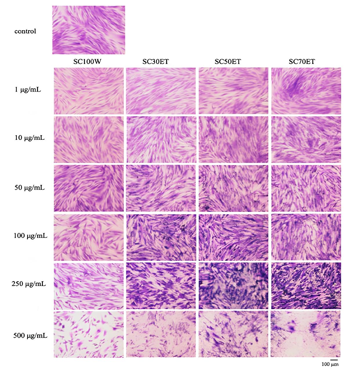 The crystal violet stain assay was used to confirm the cytotoxicity of the crude extracts, followed by morphology observation [21,22]. The NHDF cells were cultured and treated with different concentrations of the crude extract compared with the control for 24 h, similar to the MTT assay. After the treatment duration, the supernatant was removed, the cells were washed with PBS pH 7.4 and fixed with 4 %w/v paraformaldehyde for 1 h at room temperature. After fixation, the cells were stained with 0.5 %w/v crystal violet solution and incubated for 30 min. Then, the cells were rinsed with tap water to remove excess stain and air dried. Cell morphology was visualized under a light microscope (EVOS® XL Core Imaging System, Thermo Fisher Scientific Inc., Waltham, MA, USA).