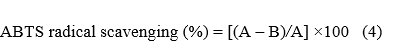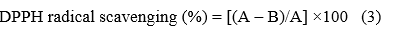 where A is the absorbance of the reaction with the extract at 570 nm, and B is the absorbance of the control without the extract.