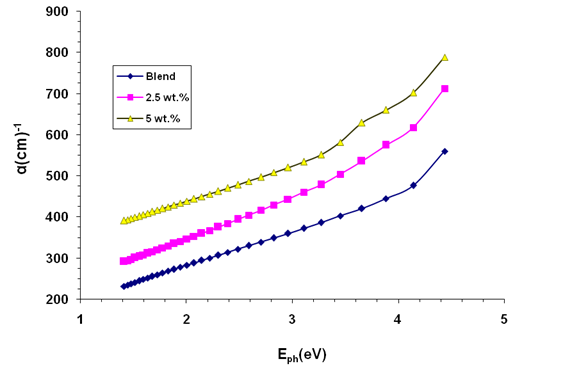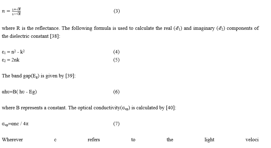 where λ refers to the wavelength and (α) indicates to the coefficient of absorption. Coefficient of absorption is defined by [36]: