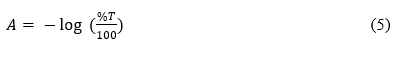 We took a sufficient amount of the dry sample, added KBr at a 1:10 ratio, and pulverized it. Next, we pressed the sample under high pressure to form a pellet. After inserting the pellet into the FTIR instrument, the resulting spectrum revealed the percentage transmittance (%T) from wave numbers 400 - 4000 cm-1. The equation uses this transmittance value to identify the functional group, as molecules absorb infrared energy at specific wavelengths, leading to a decrease in transmittance (%T) at that wavelength.