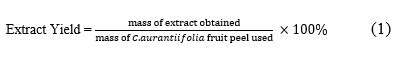 We effectively obtained the concentrated ethanol extract, enabling a comprehensive assessment of our extraction method's efficiency and the application of the extraction yield formula. This quantitative evaluation not only emphasizes the efficacy of our methodology but also provides a solid foundation for the subsequent examination of the extract's properties and potential applications. The rigorous methodology in this study underscores the significance of our findings in the investigation of C. aurantiifolia peels utilization, further enhancing its credibility. We have conducted a thorough evaluation of our extraction method's efficiency and applied the extraction yield formula. This quantitative analysis highlights the effectiveness of our approach and lays a strong foundation for future studies on the properties and possible applications of the extract. The importance of our findings regarding the use of C. aurantiifolia peels is reinforced by the meticulous methodology utilized in this research, which bolsters its credibility.