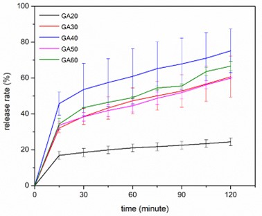 The speed at which the extract emerges from the microcapsules in 120 min can significantly impact their subsequent use. For instance, when administering an anticancer drug via injection, the microcapsules must release the extract swiftly; in this scenario, formulation code GA40 is more appropriate. This way, when they reach the target area, the drug can start working on the cancer cells without delay.