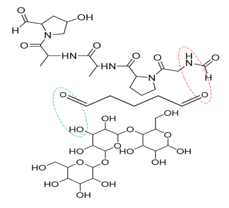 Complex coacervation is the most widely used method because it does not require high costs, does not use solvents, and is suitable for application to hydrophobic compounds [7]. This method uses one or more charged coating polymers that combine proteins and polymers. Gelatin and gum arabic polymer were used as a matrix because they work well together because they dissolve easily in water, stay stable in colloidal form, and let active ingredients release slowly [8]. However, the mechanical strength of these matrices is low, and they dissolve relatively quickly, limiting their practical application. By adding crosslinking agents, we can overcome these shortcomings and improve their chemical stability and mechanical properties. People commonly use crosslinkers with aldehyde groups, like glutaraldehyde, to enhance strength and durability because of their long-term stability [9].