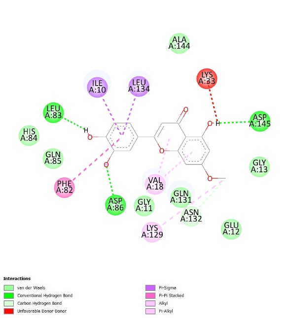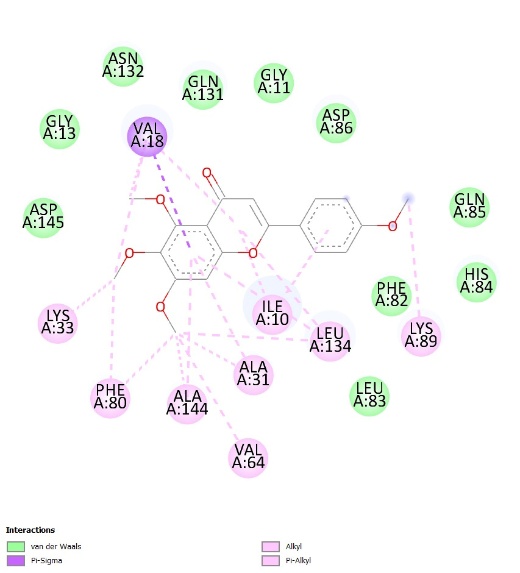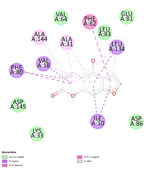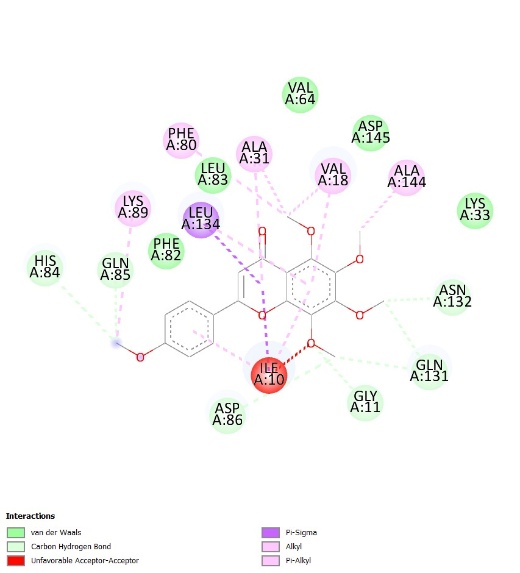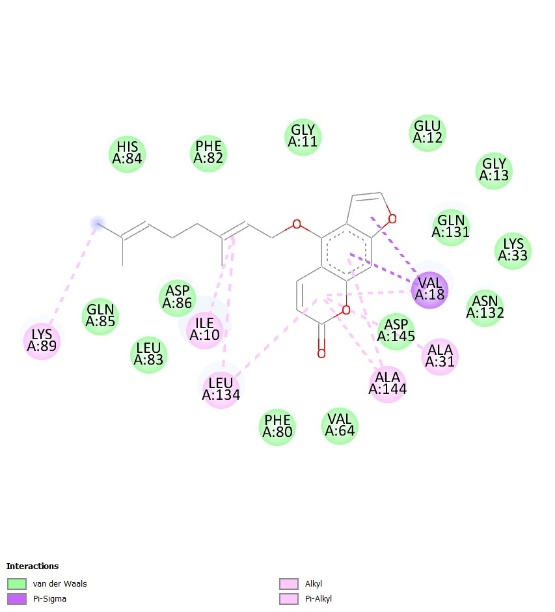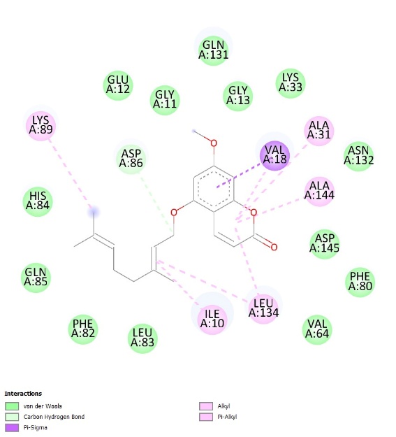 Table 1 The binding affinity of natural ligands and the main compound of C. aurantiifolia as potential ligands.