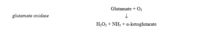 The resulting H2O2 from the reaction of glutamate with glutamate oxidase was monitored for glutamate detection, as illustrated in the following equation.