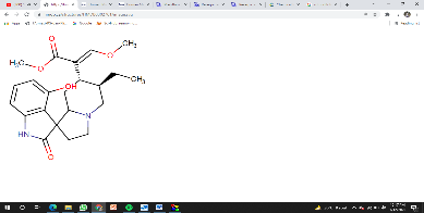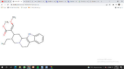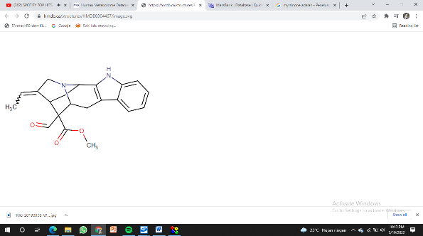 Polyneuridinealdehyde's possible anticancer properties have not been reported. Polyneuridinealdehyde is classified as an indole alkaloid chemical within the compound group. Indole alkaloids exhibit significant anti-tumor and anti-estrogenic properties against MCF-7 and MDA-MB-231 breast cancer cells [36]. According to the chemical class, indole alkaloids in kratom leaves have been shown by in silico to be able to inhibit estrogen receptor alpha and cause apoptosis by breaking the link between p53 and MDM2 and subsequently reactivating p53 activity [37]. Indole alkaloids have been shown to promote apoptosis in MCF-7 breast cancer cells by inhibiting the Bcl-2 protein [22].