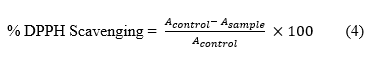 Twenty µL of each GEO sample (at concentrations of 1, 5, 10, 20, 50, and 100 µg/mL in ethanol) or Trolox (used as a positive control) in ethanol was added separately to 130 µL of a 0.1 mM DPPH solution in ethanol in a 96-well microplate. After incubation in the dark for 30 min at 25 °C, the absorbance of each mixture and control (containing DPPH solution and ethanol only) was measured at 517 nm using ethanol as the blank. The IC₅₀ value (the concentration required to scavenge 50% of DPPH radicals) was determined from a graph plotting the percentage inhibition against the GEO concentration. The percentage DPPH radical scavenging activity was calculated using the following formula: