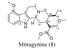 Table 1 The ¹H NMR and ¹³C NMR chemical shifts of mitragynine isolated from M. speciosa leaves (CDCl₃, 400 MHz for ¹H NMR and 100 MHz for ¹³C NMR) compared with reference values [32] (parentheses).