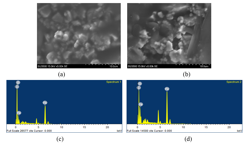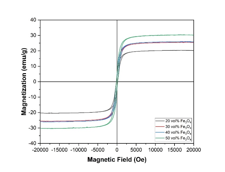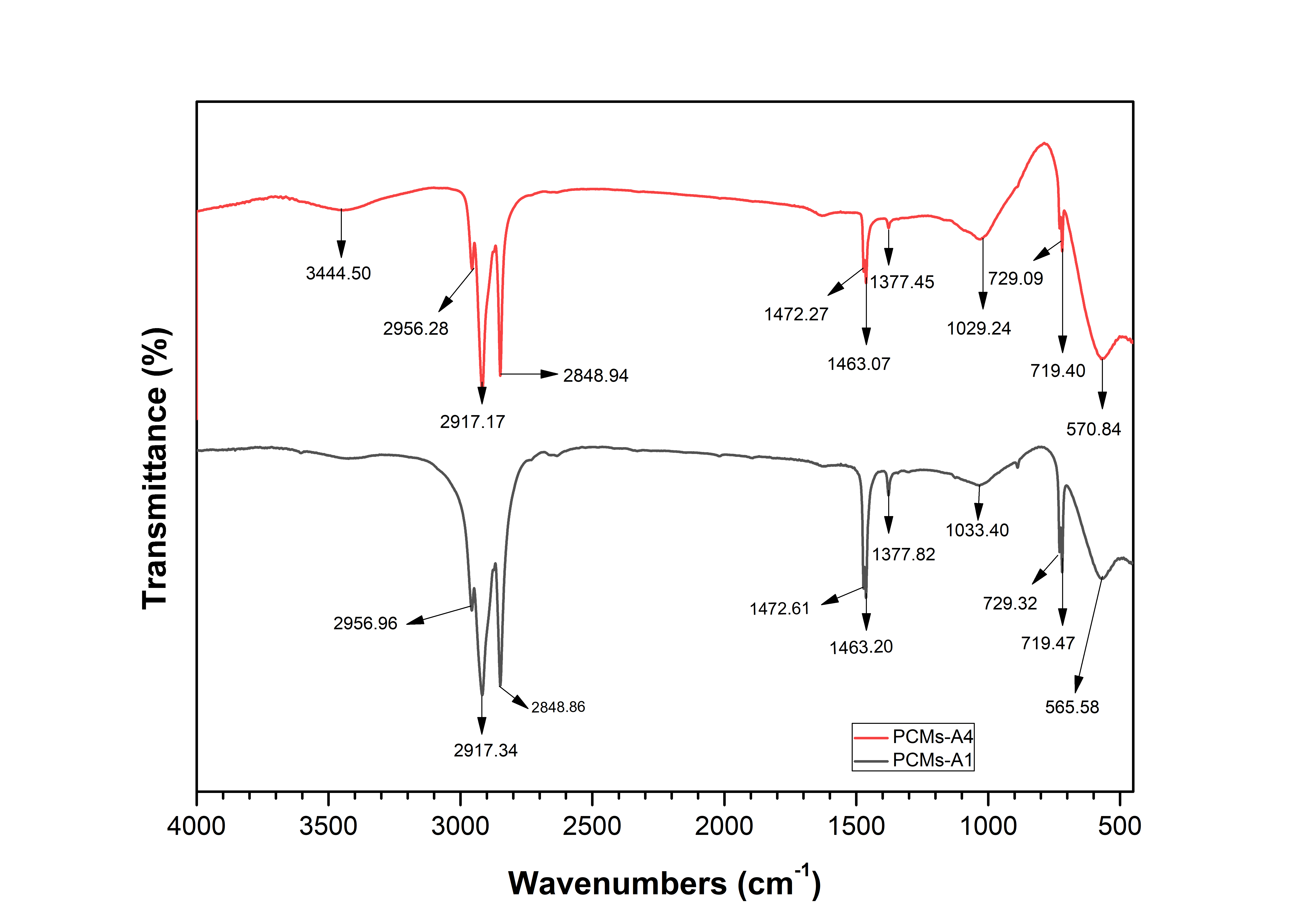The crystalline paraffin and Fe3O4 phases of the PCM composite were determined using XRD (D/teX ultra250). The chemical structure of the PCM was analyzed using fourier transform infrared spectroscopy (FTIR; Thermoscientific Nicolet iS 10) in the range of 4,000 - 400 cm−1. The morphology and microstructure of the shape-stabilized PCM were investigated using Scanning Electron Microscopy-Energy Dispersive X-Ray (SEM-EDX; SEM Hitachi, SU3500). The thermal stability of the shape-stabilized PCM was evaluated using a differential scanning calorimeter (DSC 8000, Perkin Elmer) to determine the latent heat and phase change temperature, which was carried out in a N2 atmosphere from 30 to 150 C at a heating/cooling rate of 10 C min−1. The thermal conductivities of the PCM were measured using a QTM-500-thin film instrument.
