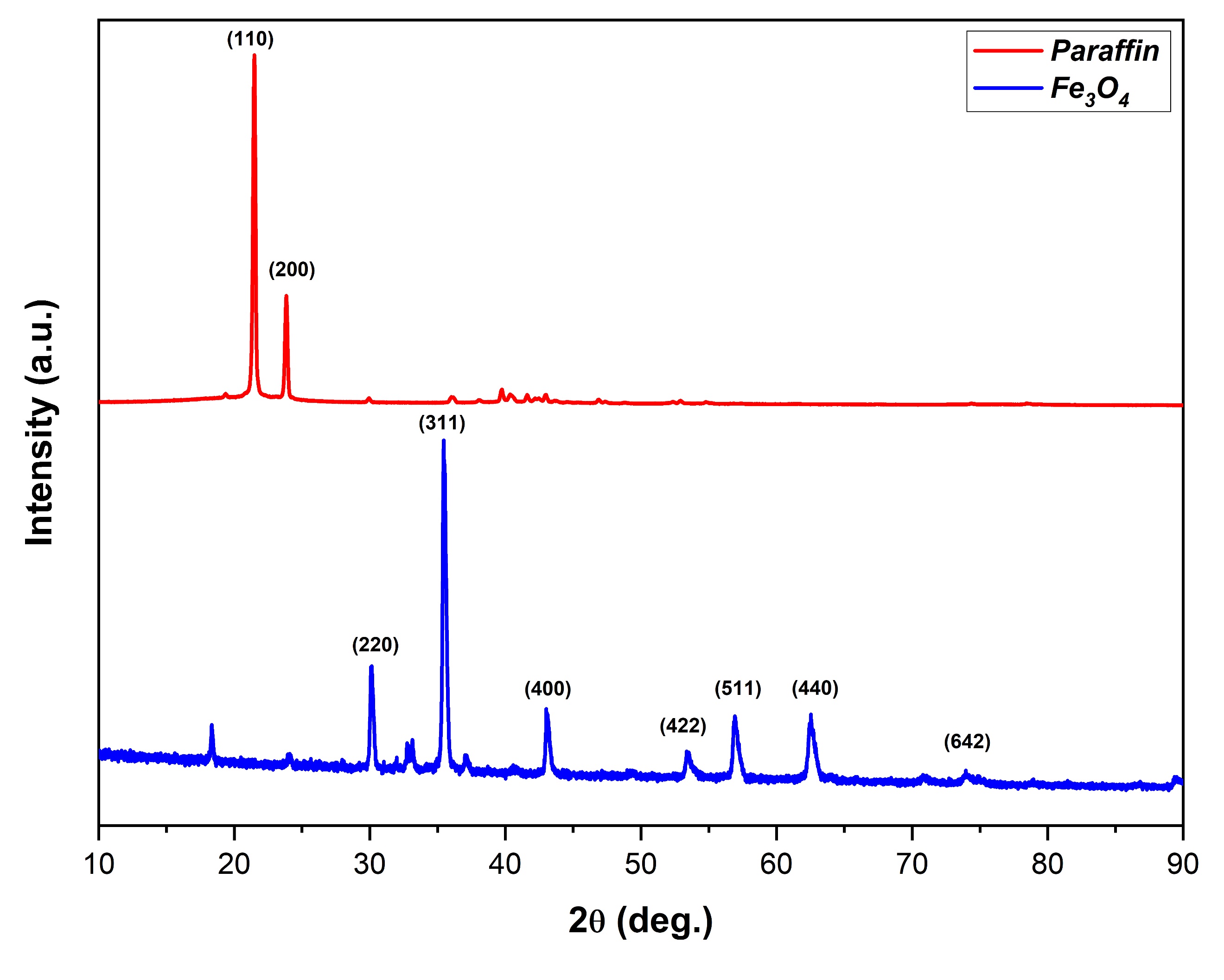 [35]. The X-ray diffraction (XRD) patterns of paraffin and Fe3O4