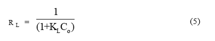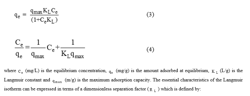 The Langmuir isotherm is expressed in nonlinear and linear forms in Eqs. (3) - (4), respectively.