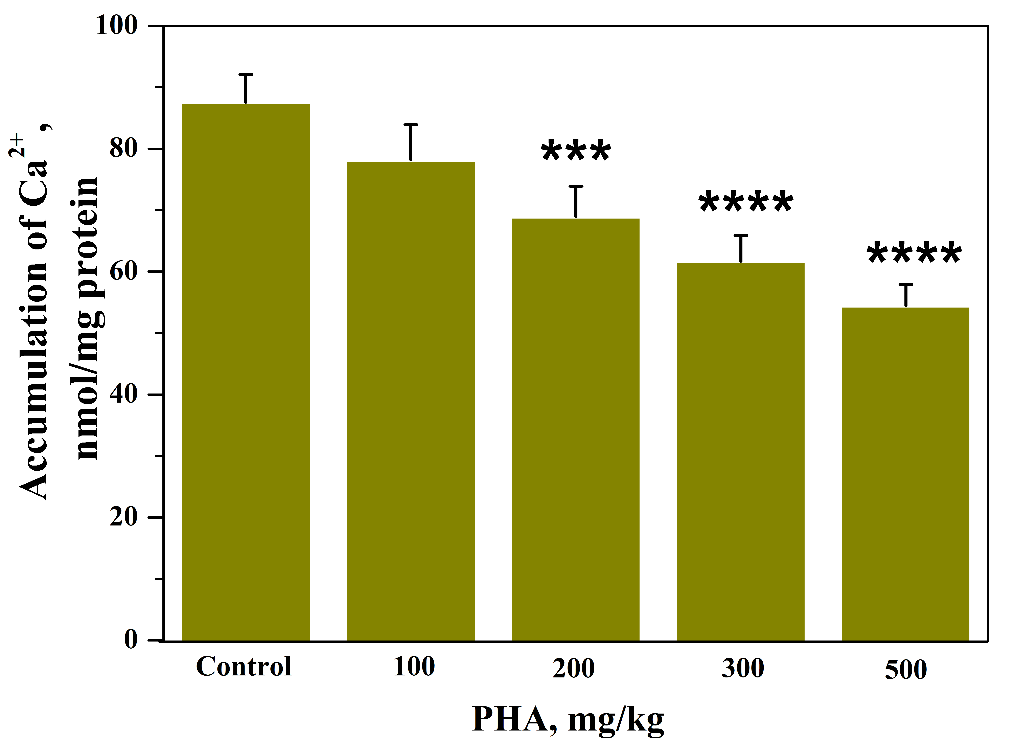 Figure 5 Changes in Ca2+ transport in rat liver mitochondria under the influence of PHA (n = 4).