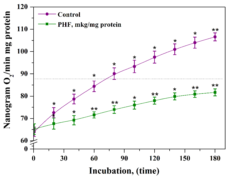 Table 2 Effect of PHF on mitochondrial dehydrogenase and oxidase activities (M ± m; n = 4).