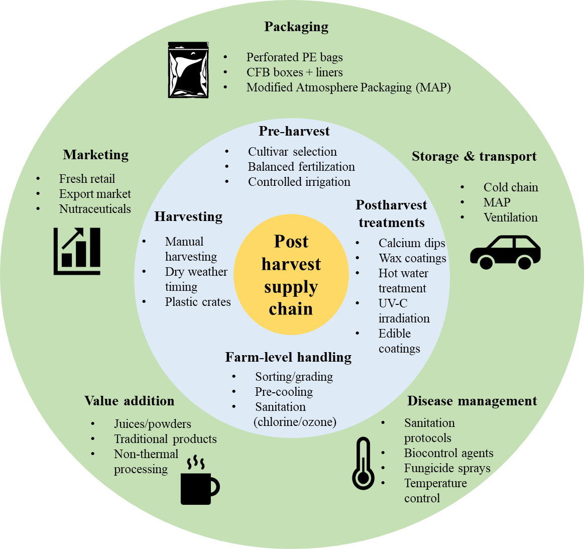 Figure 2 Overview of the post-harvest supply chain components for IG fruits.