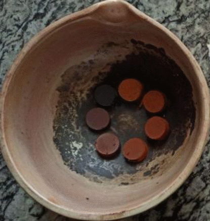 After that, it is allowed to cool in the oven for 24 h. The powder was then compressed using a hydraulic press at 150 kN of pressure for 2 min, forming it into a 20 mm diameter disc, as seen in Figure 2.