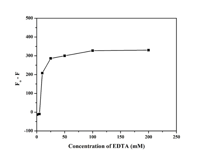 Figure 9 Effect of EDTA concentration (mM) containing 200 µL CDs and 0.1 M NaCl in Britton Robinson buffer solution at pH 4