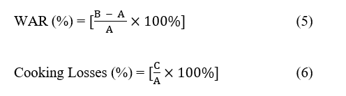 Water Absorption Ratio (WAR), cooking losses, and cooking time