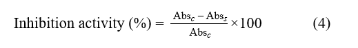 where Absc is the control of the absorbance and AbsS is the sample of the absorbance.