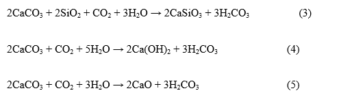 These results are consistent with previous findings on CaCO 3 decomposition and CO 2 capture processes reported by Rodríguez et al. [22]. The unexpected wollastonite formation at 100 C and 1 atm (sample LSP-1) likely reflects kinetic precipitation from highly reactive, finely ground material and CO 2 -saturated solutions, rather than thermodynamic stability at low temperatures.
