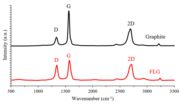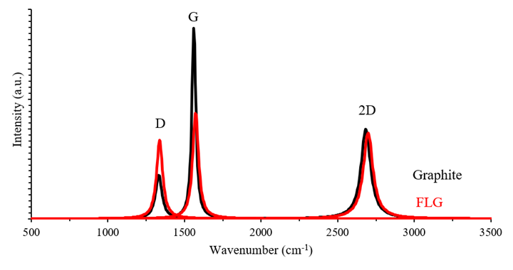 The concentrations of FLG were determined using UV-Vis spectroscopy (PhotoLab 7600). To characterize the sample, Raman spectroscopy was used to determine the degree of graphitization in the GO materials as well as the I 2D /I G intensity ratio [21 ]. In addition, the structure of GO was analyzed using X-ray diffraction (XRD, PANalytical Empyrean ), and transmission electron microscopy (TEM, JOEL, JEM-2010 ) images were used to investigate the morphological properties of graphite nanostructures.