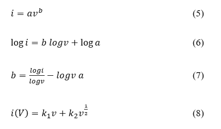 To confirm the storage mechanism of materials, the relationship between peak current and scan rates according to Power’s law is used, shown in Eq. (5), where i, a, and vb represent the peak current, scan rate, and constants, respectively. The b value can be determined from the slope of log (v) vs log (i) plot from Eqs. (6) - (7). According to the Randles-Sevcik equation, b = 0.5 indicates that the electrochemical storage mechanism is dominated by diffusion control for battery-like materials. Meanwhile, the value b = 1 indicates the dominance of the capacitive-controlled for EDLC and pseudocapacitive materials [6,28]. For further analysis of the capacitive and diffusive contributions, the power law equation can be modified into Eq. (8). If the relationship between i and v is linear (i ∝ v1), the charge storage reaction is limited by the capacitive control. While if the relationship between i and v is nonlinear (i ∝ v1/2), the charge storage reaction is limited by diffusion [28]. The constants k1 and k2 represent the contribution of capacitive-controlled and diffusive-controlled, and can be evaluated by the slope and the intercept of v ½ vs i (V) /v ½ [29].