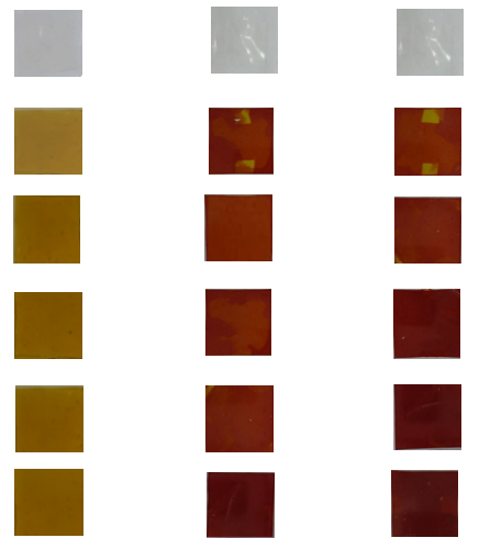 Color Response of the indicator films to volatile ammonia [8 mM] |