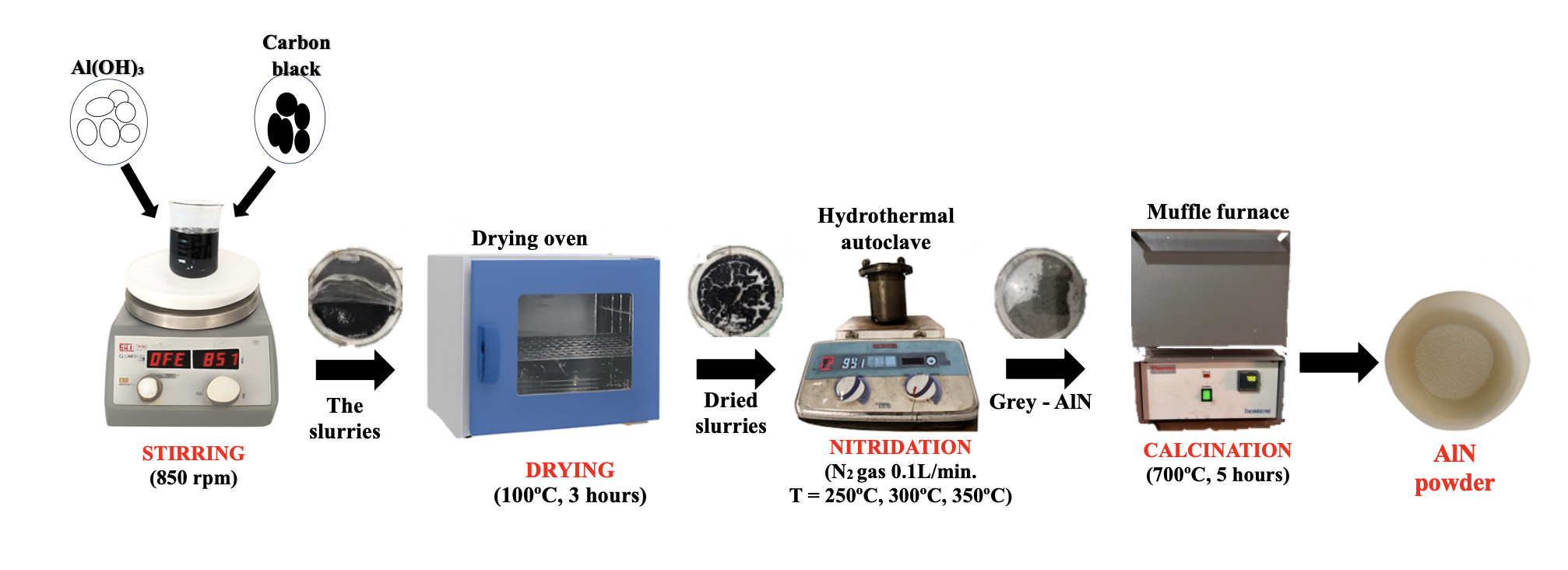 Keywords: Aluminium nitride (AlN), Al(OH)₃, Carbon black, Hydrothermal autoclave, CRN