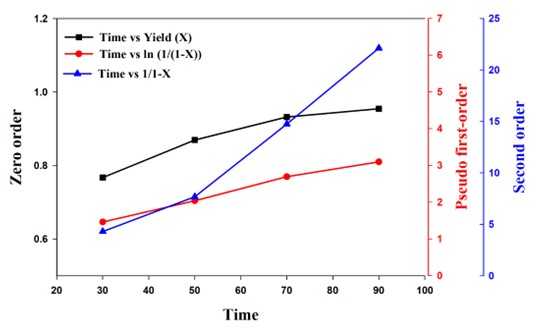 reaction time of 90 min, yielding 95.5% biodiesel. Kinetic modeling
