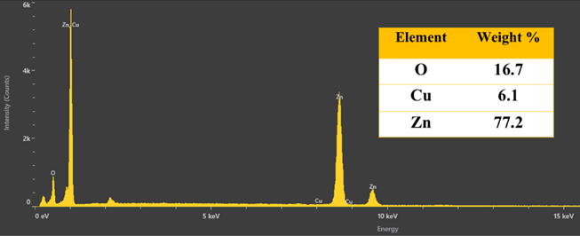 Zinc Sulfate Heptahydrate (ZnSO 4 ·7H 2 O) was supplied by Himedia, India with 99% purity, Copper(ll) Sulfate Pentahydrate (CuSO 4 ·5H 2 O) was supplied by Himedia, India with 99.5% purity, Sodium Carbonate (Na 2 CO 3 ) was supplied by Loba Chemie, India with 99.5% purity were used as precursors. Phenolphthalein (C 22 H 14 O 4 ) used as Indicator. Methanol (CH 3 OH) > 99% India, Potassium hydroxide (KOH) pellets was supplied by Himedia, India and Waste cooking oil from a restaurant for local fast food.