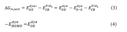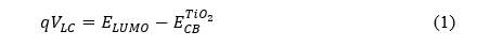 One in principle could call the parameter for the electronic injection mechanism from the Lowest Unoccupied Molecular Orbital (LUMO) the conduction band of a Titanium Dioxide anatase-type semiconductor by the qVLC parameter. The parameter can be determined using the equation shown below [83-87] ,
