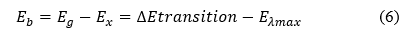 where (Eg) is the energy difference of transitions and (E λmax ) is the maximum absorbed energy, optical bandgap.