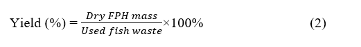 The yield of FPHs was calculated based on the proportion of the dry weight of FPHs produced to the total lemuru waste scales used [18]. This calculation can be represented by Eq. (2).