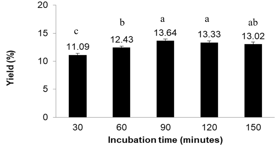 Figure 1 Results of incubation time optimization on lemuru fish (S. lemuru) scales powder.